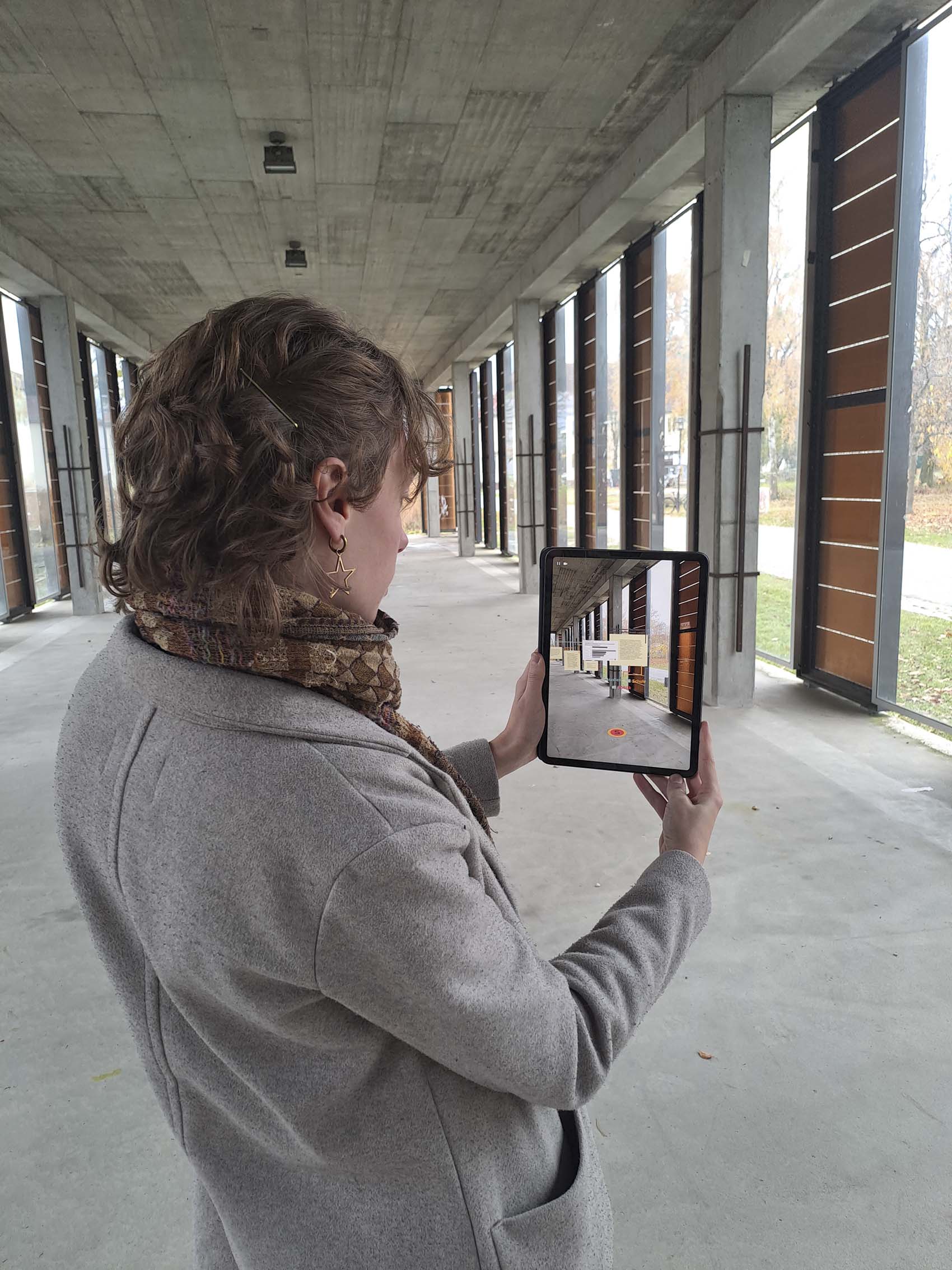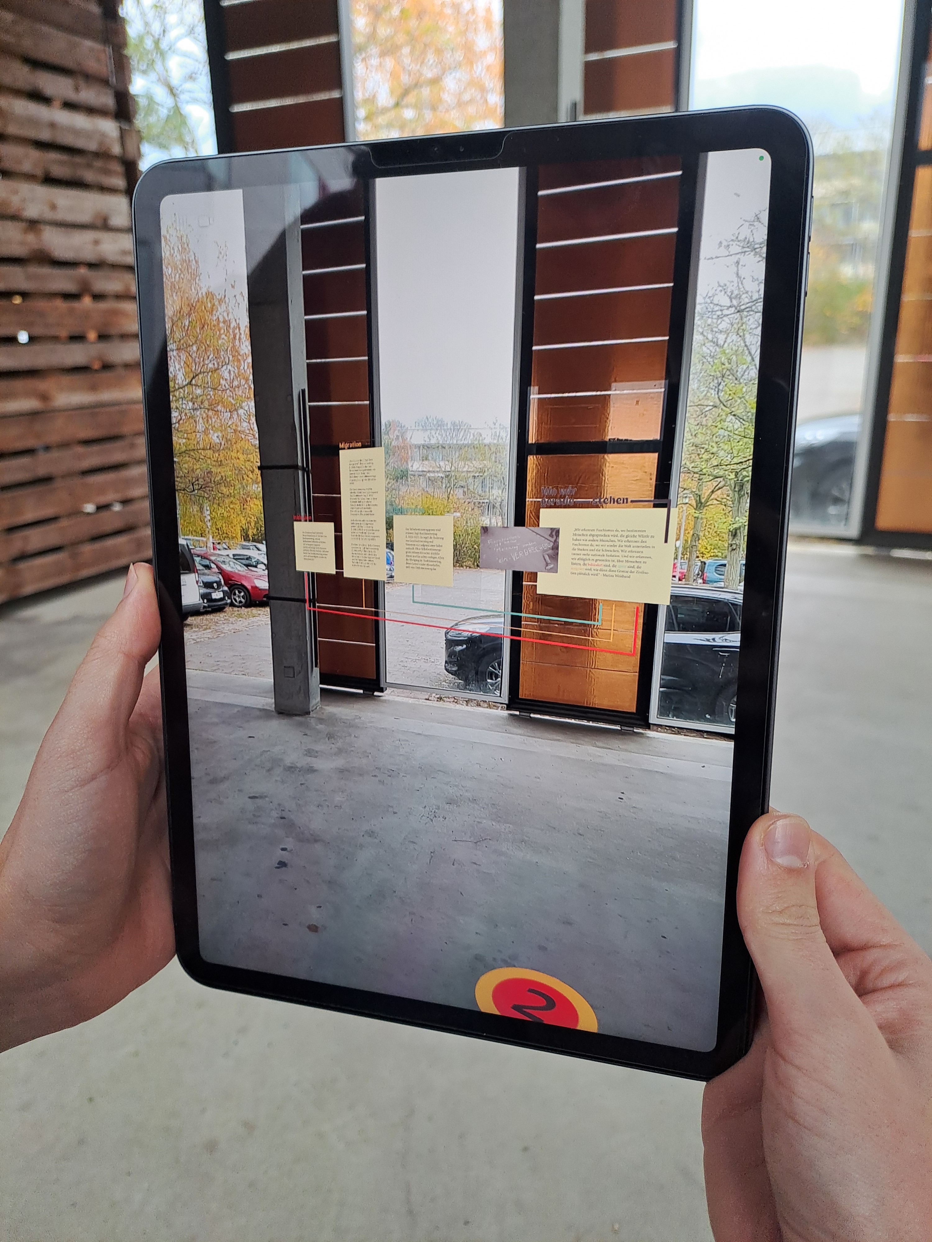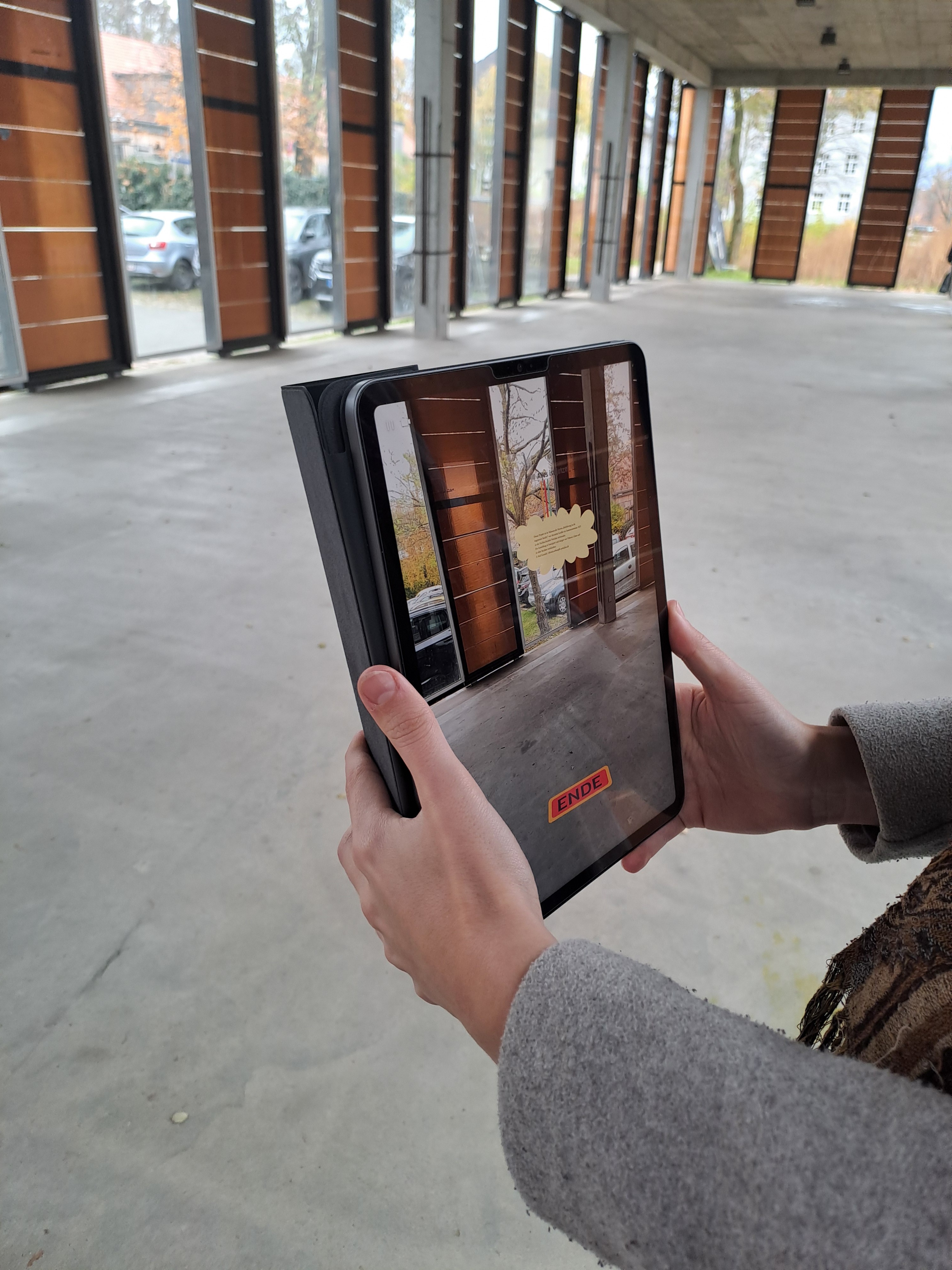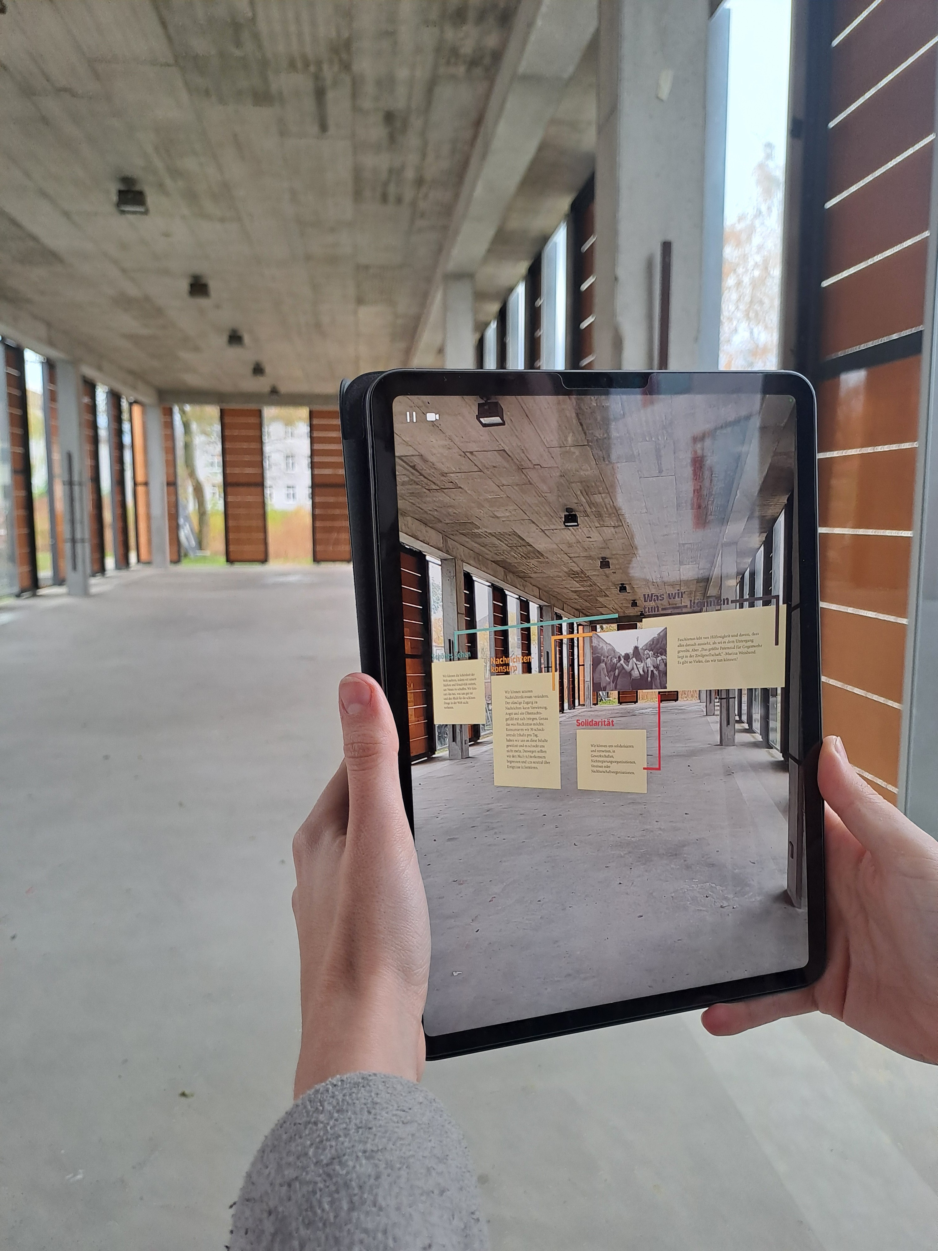 Augmented Reality legt eine digitale Oberfläche über die reale Welt, also projeziert Objekte in physisch vorhandene Räume. Die Ausstellung ist mit Scenery entanden.