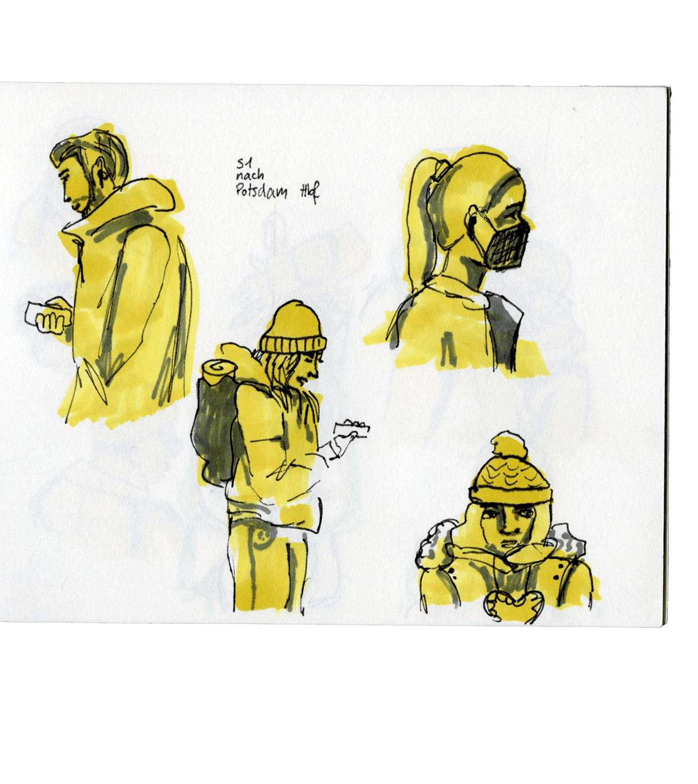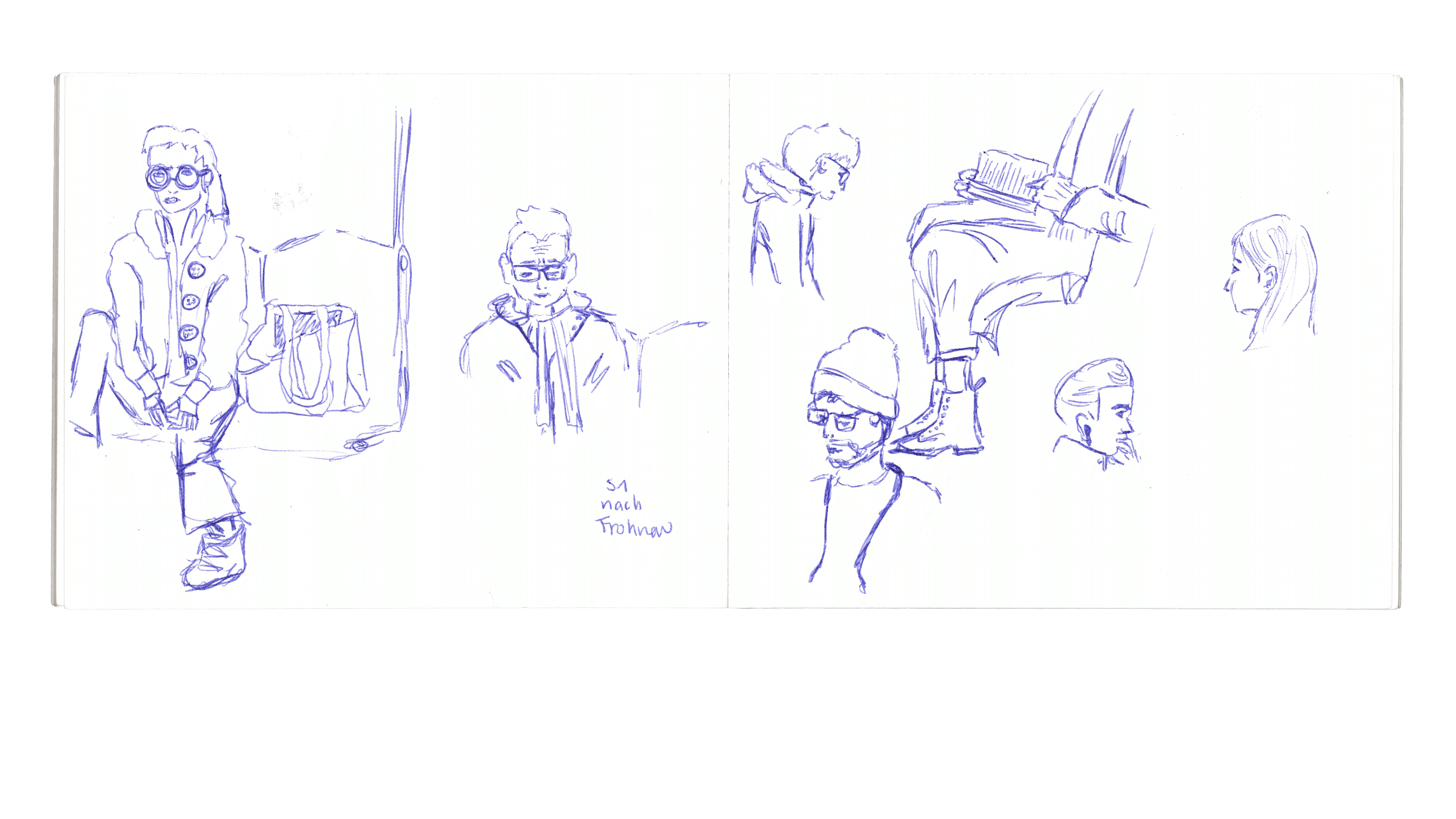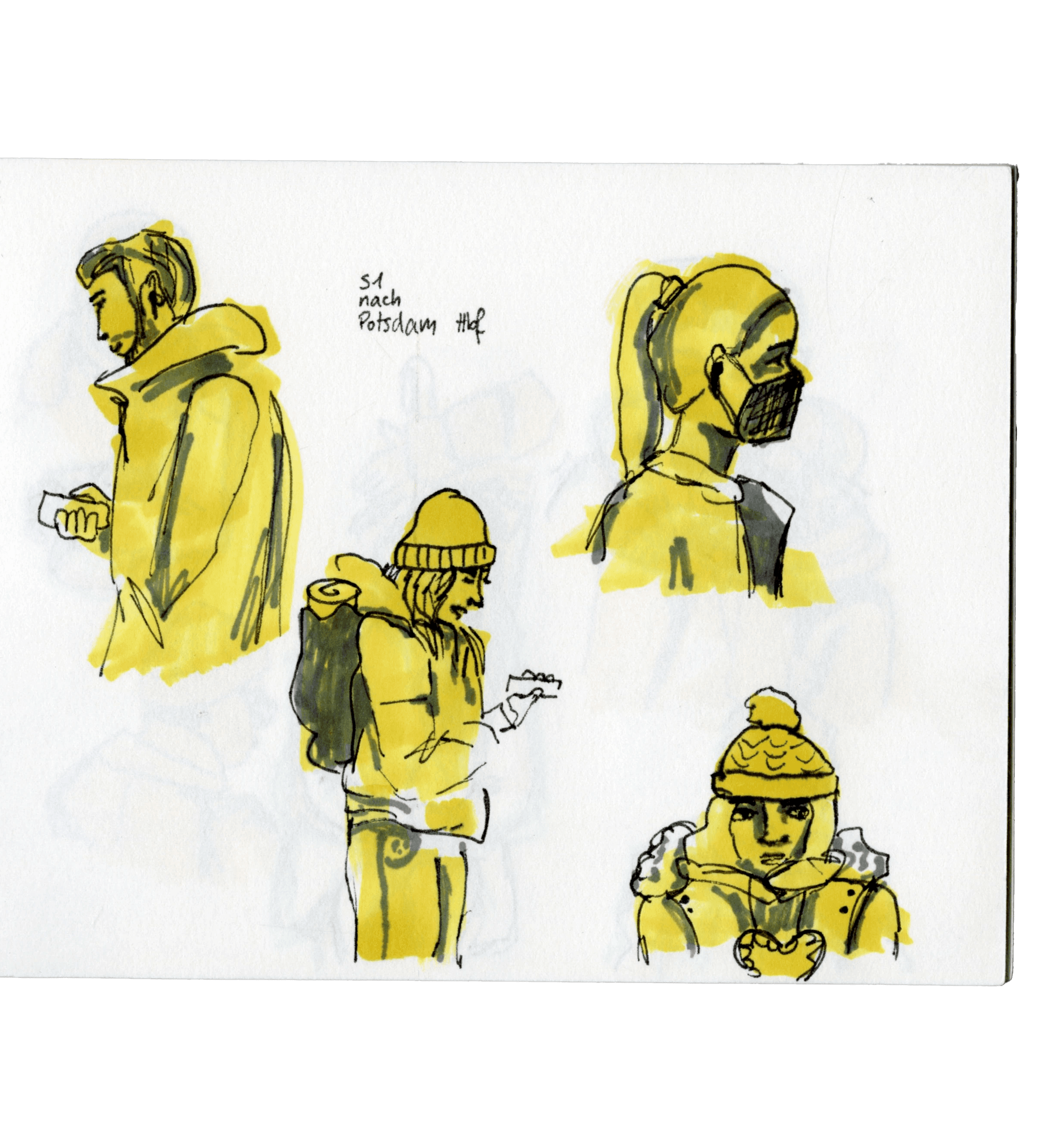 Häufig beobachte und zeichne ich, wenn ich unterwegs bin. Meistens zwischen Berlin und Potsdam im RE1 oder der S7.