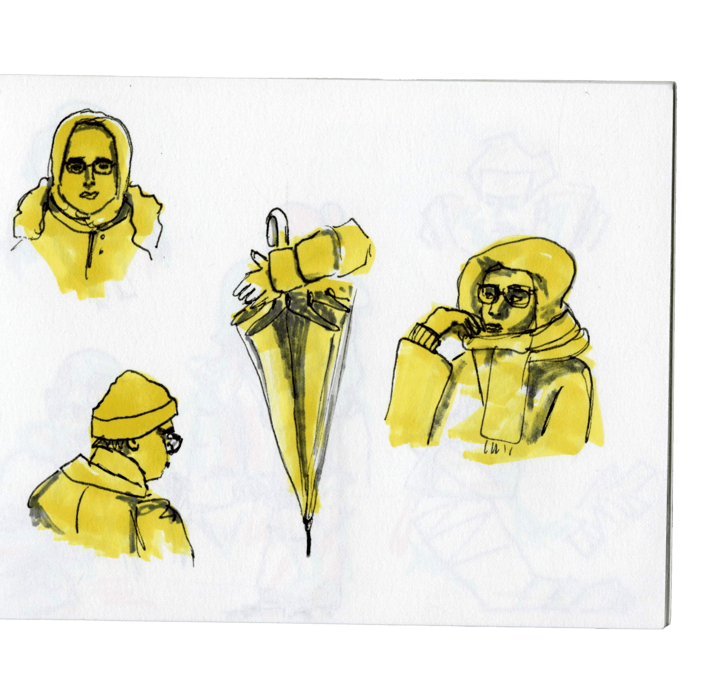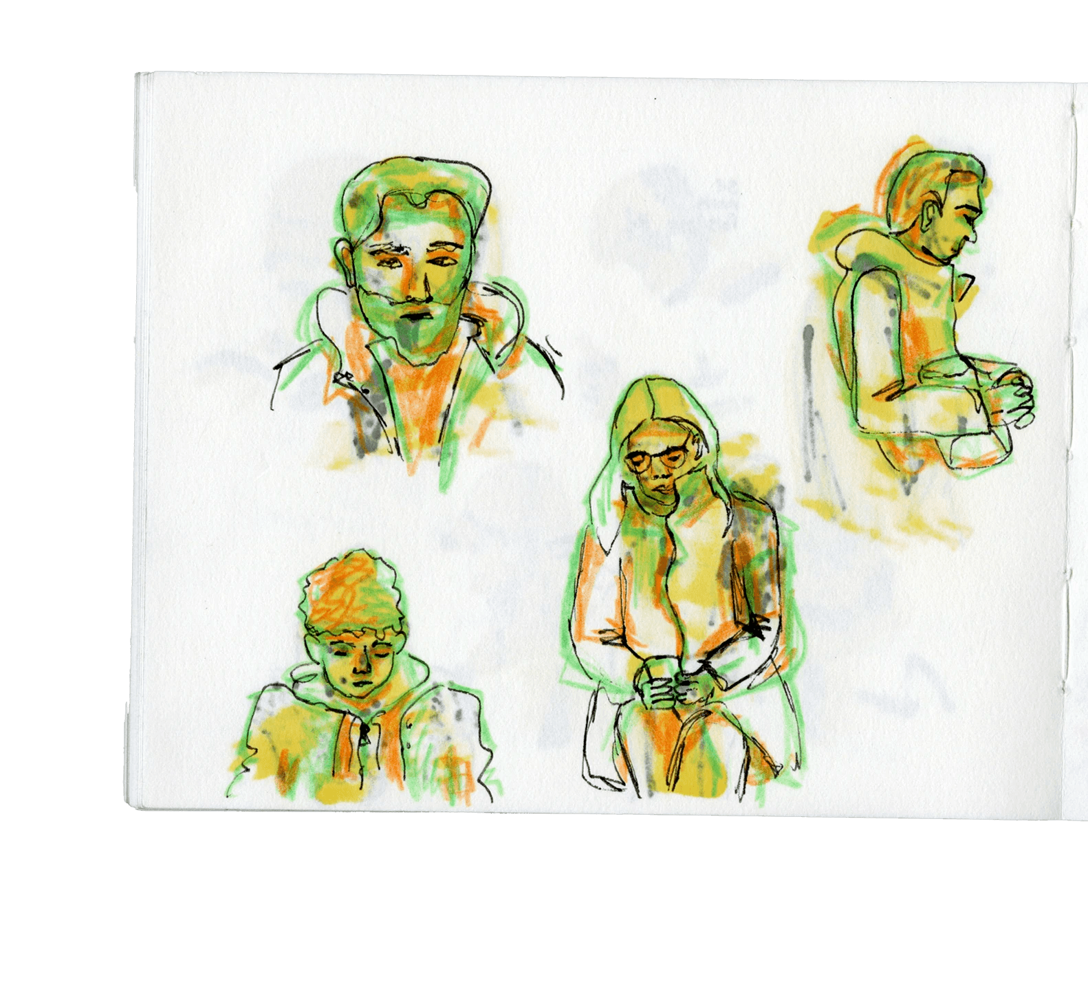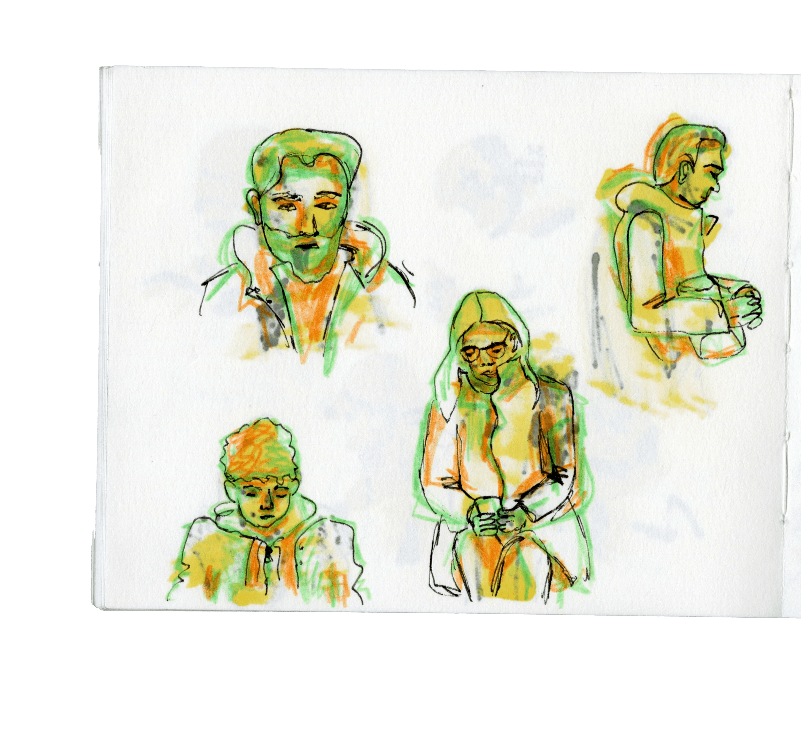 Häufig beobachte und zeichne ich, wenn ich unterwegs bin. Meistens zwischen Berlin und Potsdam im RE1 oder der S7.